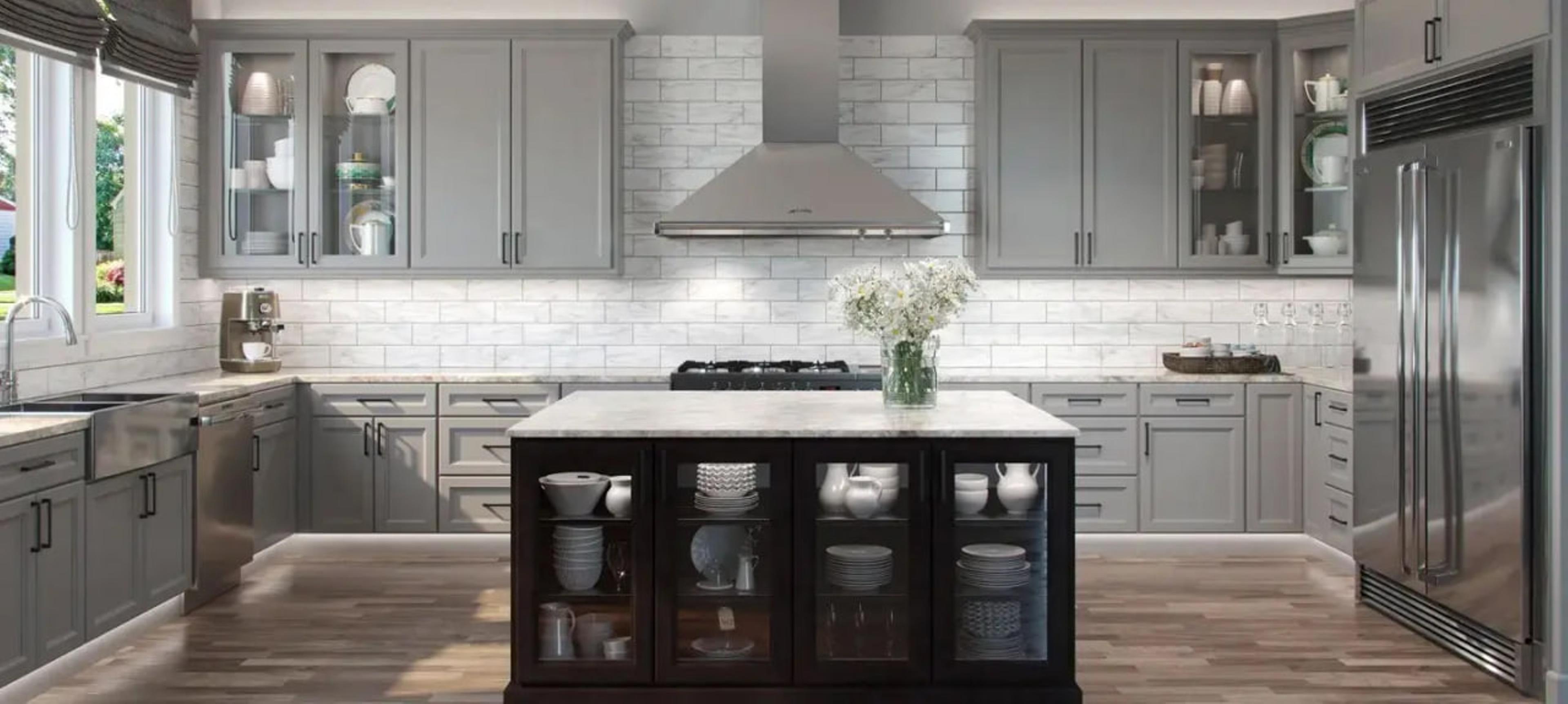 Pebble Gray Maui cabinets are a sleek and elegant choice for any kitchen design. Gray cabinets add a bit of color that can add warmth to your kitchen.